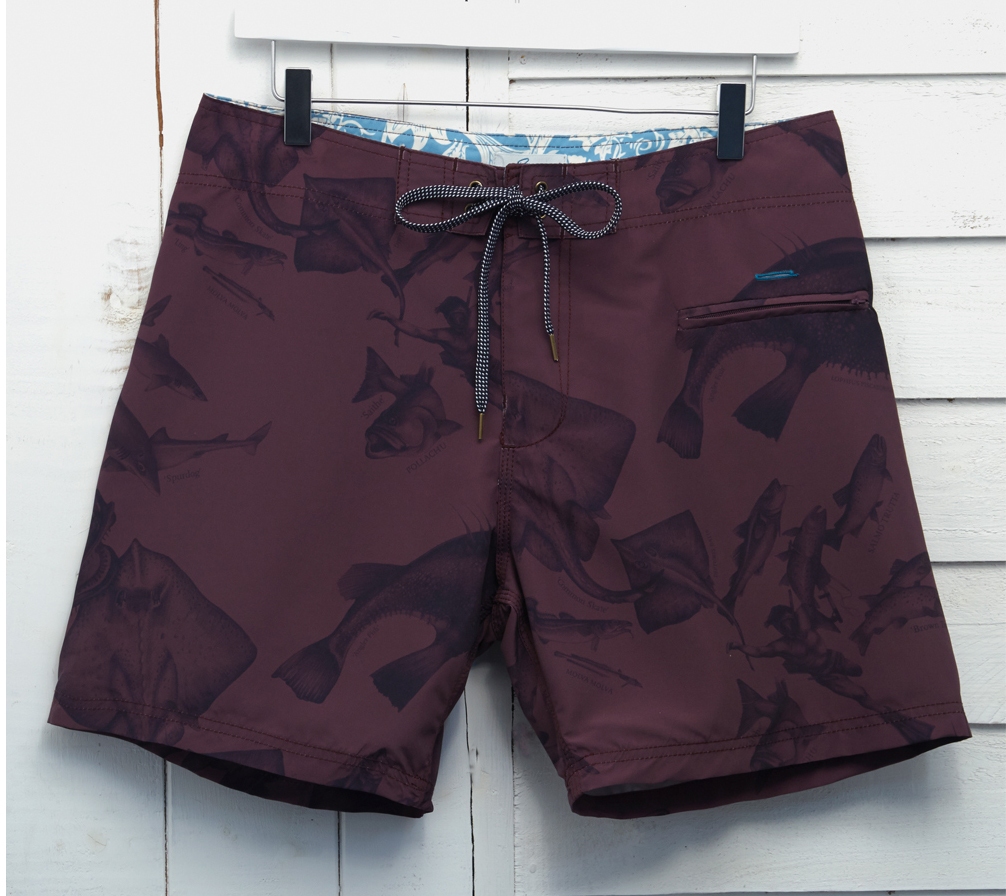 Endangered Species Fish burgundy boardshort by Kristine Khan