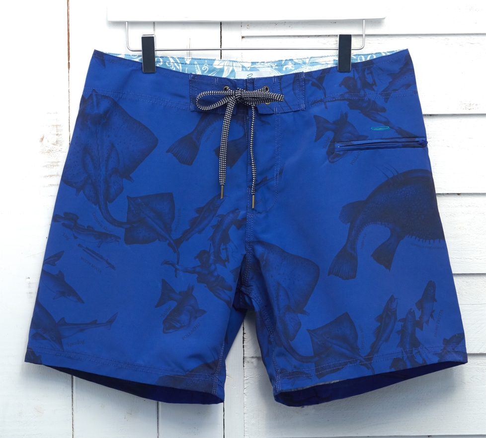 Endangered Species Fish deep blue boardshort by Kristine Khan